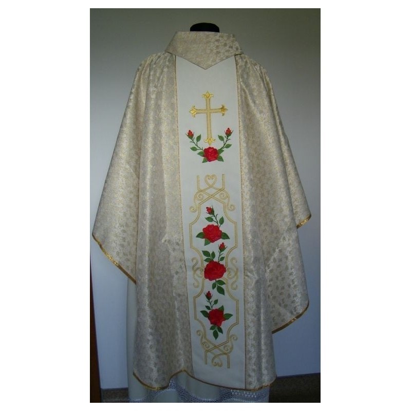 Choix de roses brodées or ou rouge au bas de la chasuble.