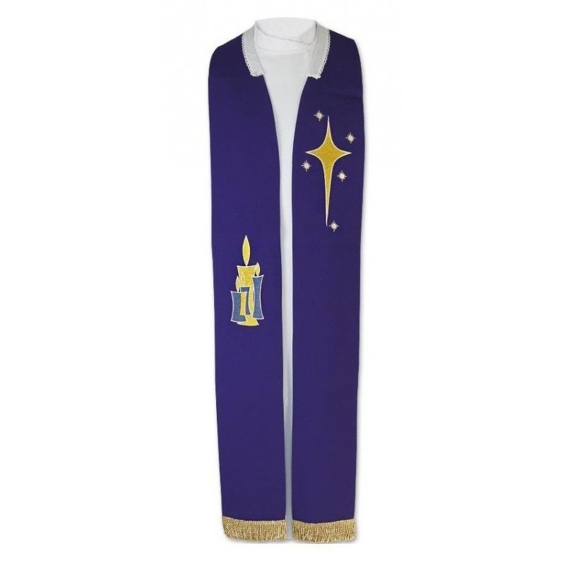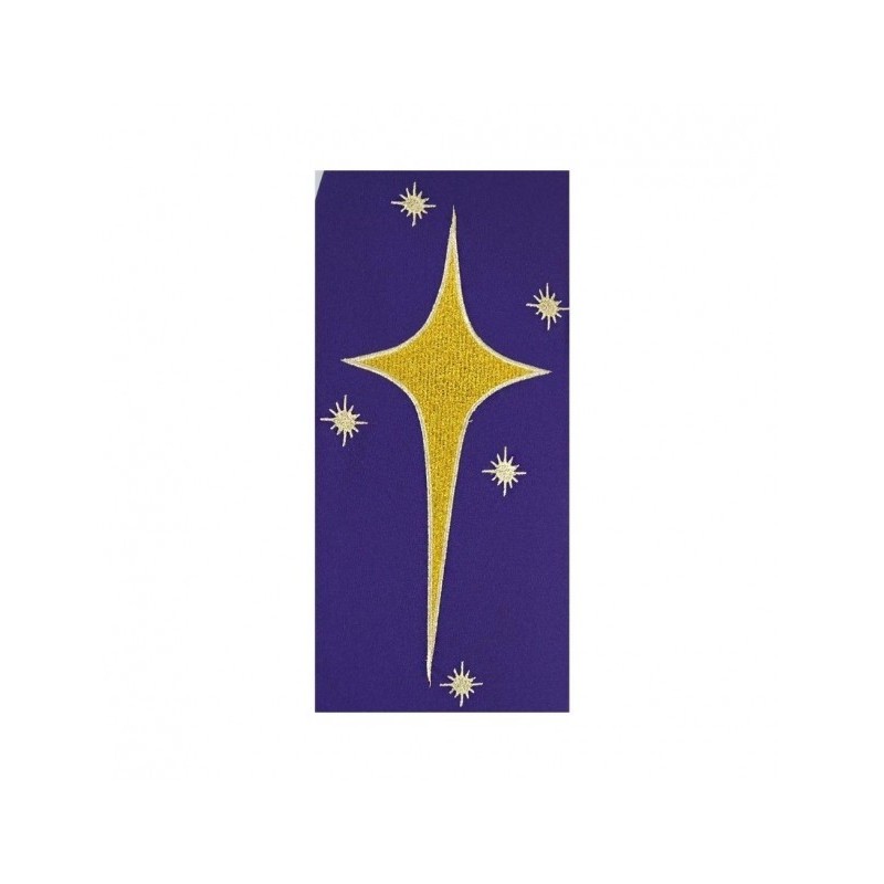 La broderie liturgique est réalisée avec du fil métallisé doré, ce qui permet à l'étole de conserver sa qualité après le lavage et le repassage.
